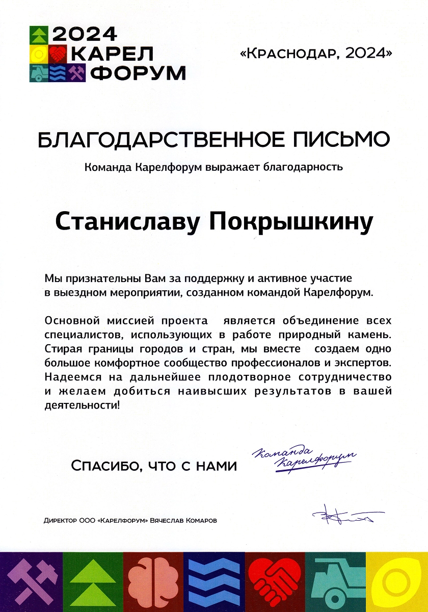 Ежегодные экспоненты профильных выставок в России «Некрополь», «Карелфорум», «Белый Тополь», «Ритуальные услуги. Камнеобработка» и в Белоруссии «Мемориал. Камнеобработка». Деятельность компании отмечена отраслевыми наградами: победители в номинации «медийность» в конкурсе «Золотая медаль Некрополь 2021», победители народного голосования на звание «Лучшая франшиза 2020», обладатели «Золотого скарпеля», номинанты на звание «Лицо Отрасли Некрополь 2020». Сотрудница компании признана «Самой обаятельной в каменной отрасли 2022».