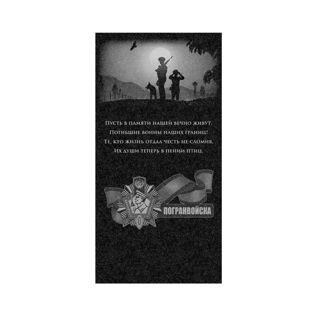 Мемориальный рисунок высокой сосны. Символизирует вечную жизнь, стойкость и мужество. Изображение передает уважение и надежду на вечное упокоение, делая его идеальным выбором для памятника.